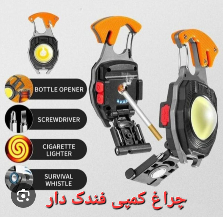 کمپینگ، محل کار، هنگام تعمیرات، در محیطهای باز و هر جایی که نیازمند روشنایی باشید این چراغ قوه مفید خواهد بود. از چراغ قوه چند کاره می توانید به عنوان جاسوئیچی استفاده کرده و یا آن را به کیفتان وصل کنید. با فشردن دکمه خاموش و روشن آن برای مرتبه اول نور مهتابی با شدت زیاد، مرتبه دوم نور مهتابی با شدت کم، در مرتبه سوم نور آفتابی با شدت زیاد، در مرتبه چهارم نور آفتابی با شدت کم، در مرتبه پنجم نور قرمز و در مرتبه ششم نور قرمز چشمک زن دریافت خواهید کرد. و در نهایت با فشردن کلید برای بار هفتم چراغ قوه خاموش خواهد شد. جنس آلیاژ بدنه چراغ قوه چند کاره آلومینیوم است که در برابر ضربه مقاوم است. برای شارژ آن کافی است از کابل شارژ که به همراه چراغ قوه قرار دارد، استفاده کنید. پشت این چراغ قوه یک فندک تعبیه شده است که با فشردن دکمه مربوط به فندک و نگه داشتن دکمه، فندک شروع به قرمز شدن می کند و با برداشتن دست از روی دکمه فندک خاموش می شود. این چراغ قوه چند کاره دارای سوت نجات و همچنین تیغ که در مواقع اضطراری می توان از آن استفاده کرد. این چراغ قوه 2 عدد پیچ گوشتی نیز دارد. که می توان سری پیچ گوشتی مورد نظر را در سوراخ بالای چراغ قوه قرار داد و استفاده کرد. پشت چراغ قوه یک آهنربا وجود دارد که موقع کار می توان به سطوح فلزی متصل کرد.دارای اقلام : - فندک - آهن ربا - تیغ - 2 عدد پیچ گوشتی - نور مهتابی، آفتابی و قرمز - درب بازکن - دارای سوت می باشد.