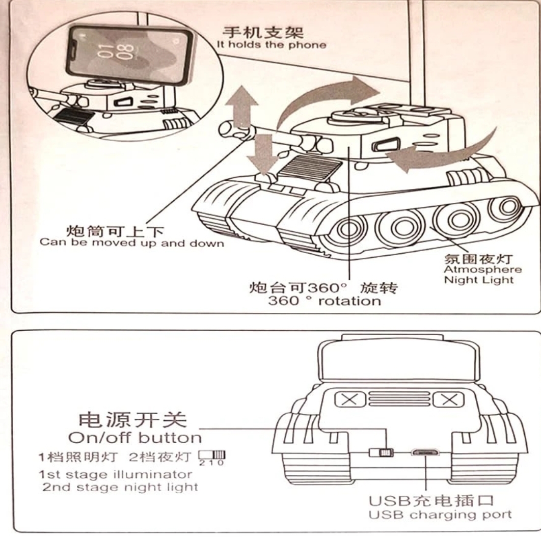 چراغ مطالعه و چراغ خواب فانتزی طرح تانک همراه با جامدادی