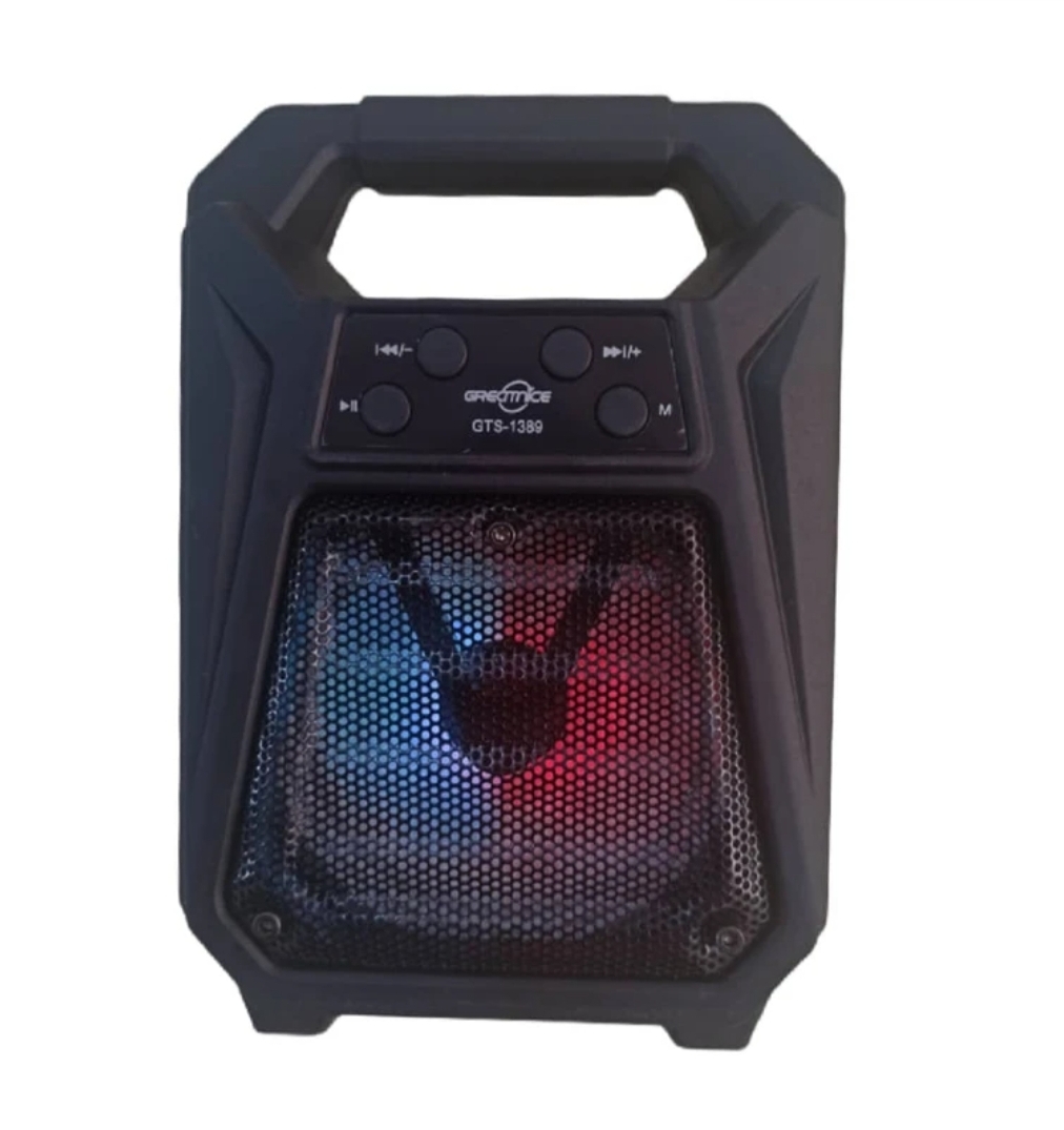 اسپیکر پرتابل GTS-1389 را می توان به شکل ایستاده به کار برد و علاوه بر بلوتوث با کارت حافظه و فلش مموری سازگاری دارد و همچنین وجود یک ساب 3 اینچی باعث شده است تا بتوانید از قدرت صدای شگفت انگیز بهره ببرید، ویژگی شگفت انگیز دیگر این اسپیکر، وجود یک رقص نوررنگی در هنگام پخش موزیک است. با توجه به سایز بسیار مناسب آن و قابلیت جایگیری در کوله پشتی و چمدان گزینه بسیار عالی برای مسافرت و کمپینگ و همچنین استفاده داخل خودرو و قطار و... میباشد. شارژ دهی مناسب و همچنین قابلیت استفاده به عنوان پاور بانک برای مواقع اضطراری و مزیتهای دیگر این اسپیکر مقرون به صرفه را به گزینه مناسبی در میان اسپیکر های مشابه تبدیل کرده است.