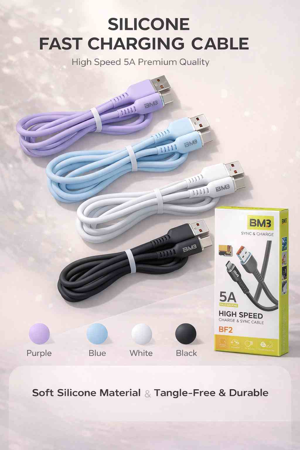 کابل شارژ و دیتا ضخیم سیلیکونی درجه یک
