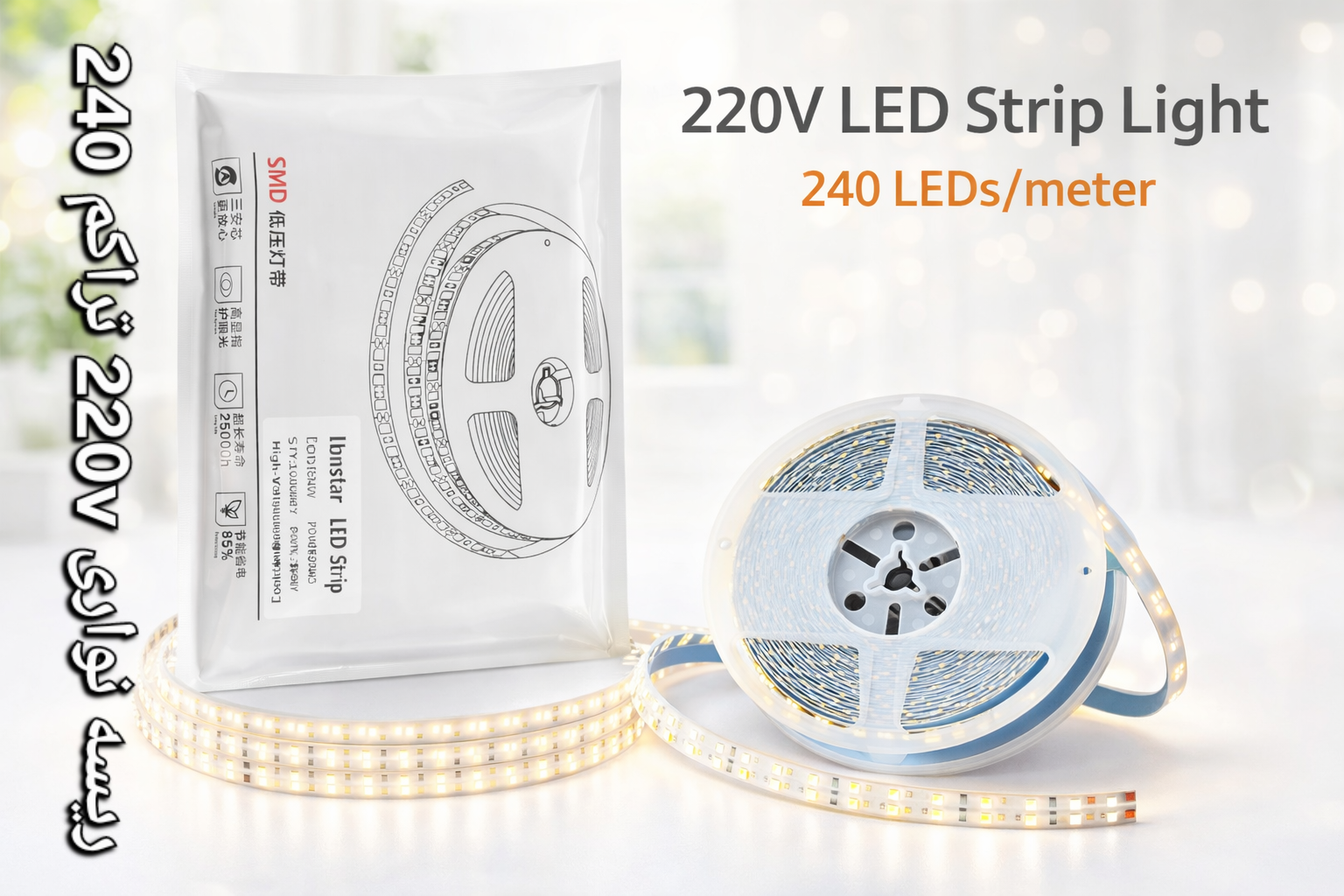 ریسه نواری ۲۲۰ ولت با تراکم ۲۴۰ رنگ مهتاب