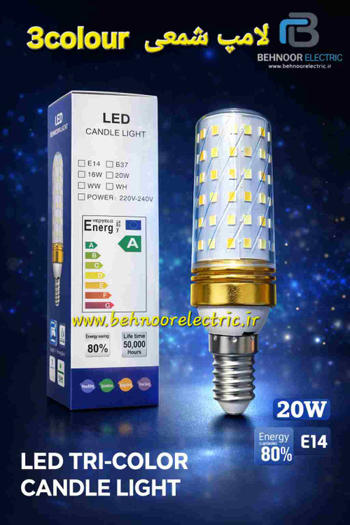 لامپ تری کالر یا سه رنگ سر پیچ شمعی(سفید افتاب نچرال)