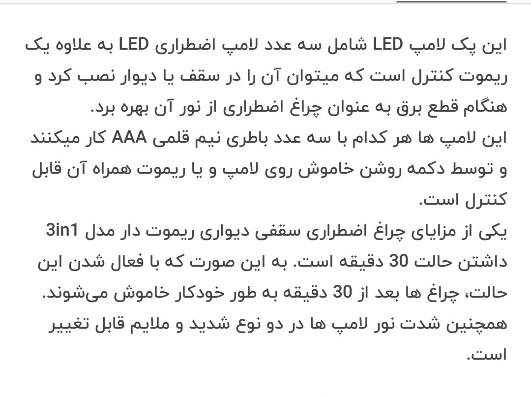 به طور خلاصه این محصول دارای نور خیلی عالی میباشد و با توجه به کیفیت باتری که روی انها نصب میشود مدت زمان نور دهی متغیر است هر کلید به طور مجزا با کلیدی که روی محصول میباشد خاموش روشن میشود و یا ریموت به طور همزمان هر سه عدد