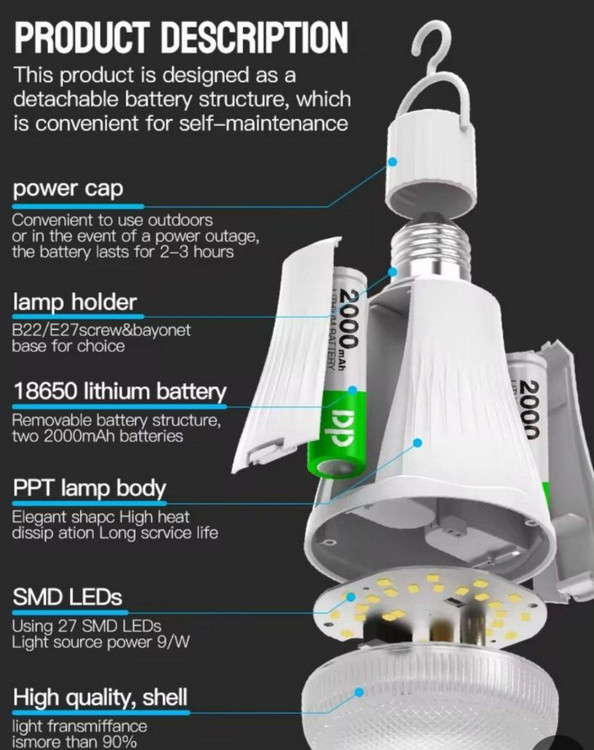| نوع باتری | 2 عدد باتری شارژی 18650 لیتیوم یون 2,000 میلی آمپر |
